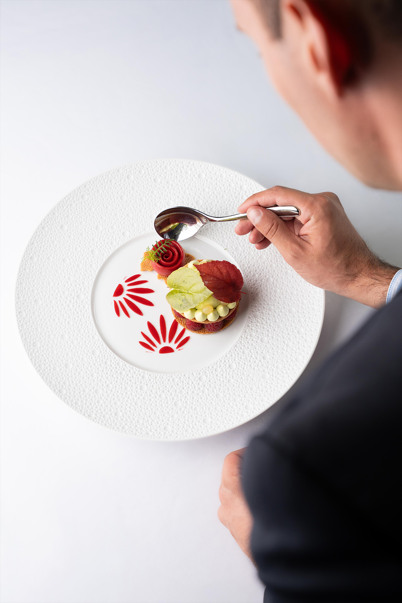 Ce reportage photographique, réalisé par Charlyne Labarre, s’attache à montrer le lieu, le travail en cuisine et le lien entre le chef, les produits et l’assiette.